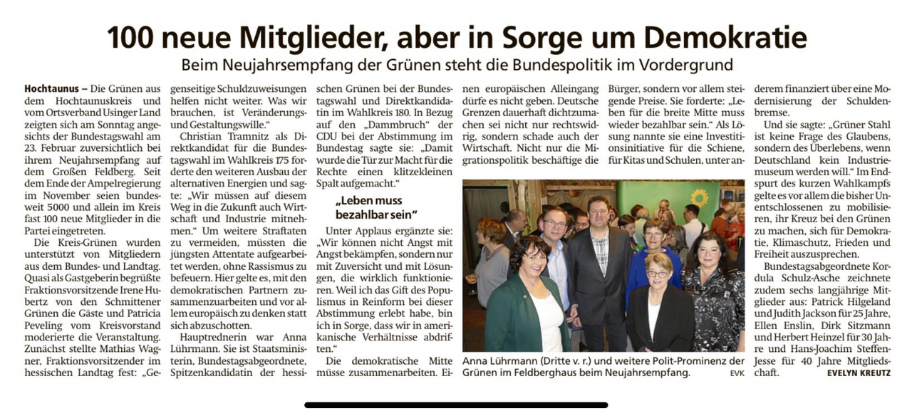 Auf der Kundgebung ab ca. 11.30 werden die Schmittener Bürgermeisterin Julia Krügers (CDU), Dr. Irene Hubertz, Fraktionsvorsitzende der Grünen in Schmitten, sowie die SPD-Landtagsabgeordnete Elke Barth sprechen. Weitere Wortbeiträge haben Vertreter*innen des DGB, der Fraktion B-now und der FDP avisiert. Die Kundgebung endet um 13.00 Uhr.